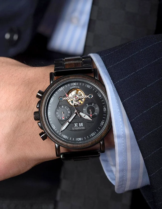 Équipée d’un mécanisme automatique de haute qualité, cette montre en bois garantit une précision inégalée et un entretien minimal. Vous n’aurez plus à vous soucier de remplacer les piles, car son fonctionnement est entièrement mécanique, alimenté par le mouvement de votre poignet. Ce niveau de performance, couplé à l’esthétique naturelle du bois, en fait un choix idéal pour les amateurs de montres. Que vous soyez en réunion d’affaires ou lors d’une sortie décontractée, la Montre en Bois Bracelet Métallique s’adapte à toutes les situations, alliant style et fonctionnalité.